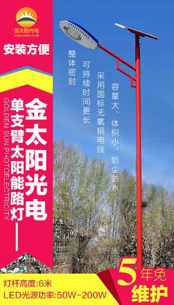 廠家直銷中國(guó)紅6米太陽(yáng)能路燈¥600-1280元
